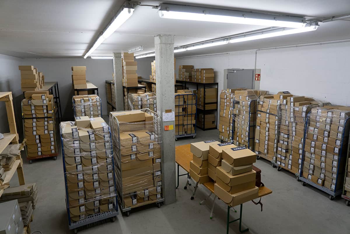Due to the incredible variety resulting from our diverse model and color combinations, some residual sizes accumulate. Also, space has to be made for new samples from time to time in our sample stock.